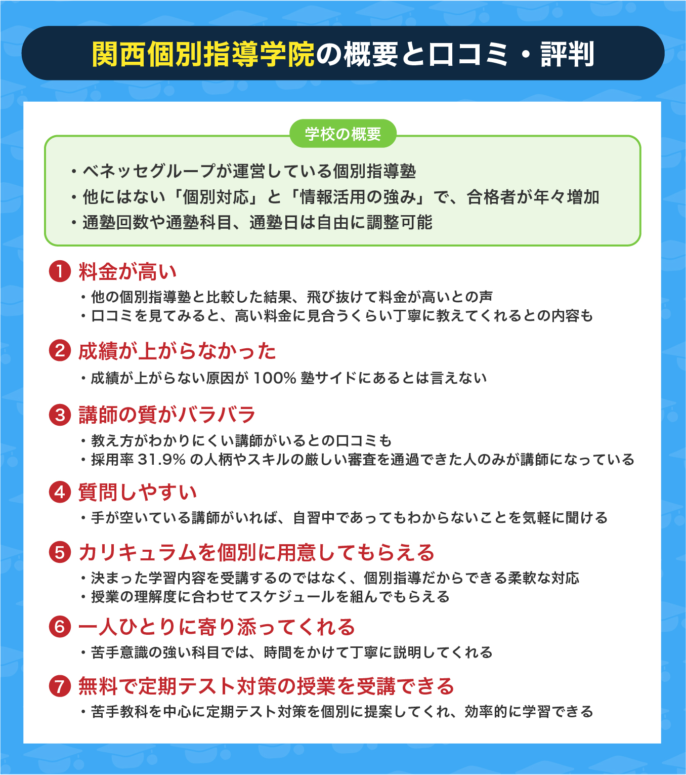 ここでは、関西個別指導学院の口コミ・評判を7つ紹介します。